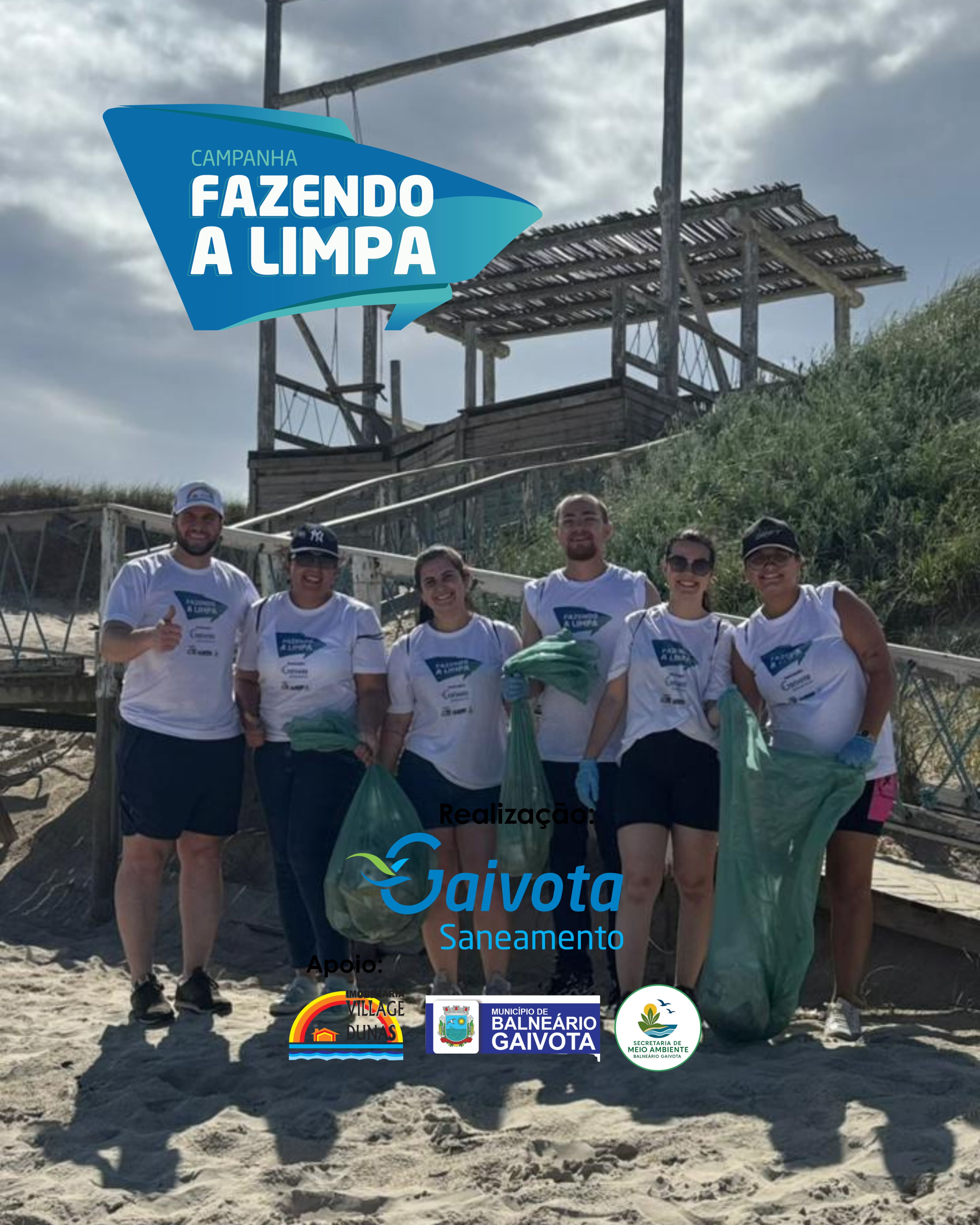 Na última sexta-feira, 30 de janeiro, a Gaivota Saneamento promoveu a 4ª edição do evento Fazendo a Limpa, uma ação de mobilização ambiental voltada à limpeza e coleta de resíduos na orla da praia. A iniciativa contou com o apoio da Imobiliária Village Dunas e reuniu cerca de 100 participantes, entre moradores, voluntários e integrantes da empresa.